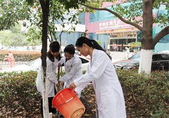 拿起铁锹、提上水桶,为医院的花草树木松松土、浇浇水……植树现场,大家动作熟练,配合默契,劳动繁忙有序,气氛活泼热烈,一派热火朝天的场面。幸孕树、无忧树、健康树、幸福树……细心的医务人员还为自己种下的树苗“起了名字”,表达了自己对绿色和健康的美好祝愿、对环保生活、爱护树木的热情,以及对所有女性健康“茁壮成长”的期望。