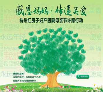 活动当天,不管你是通过网络、微信、QQ、电话预约来院的,只要是前30名来院为妈妈许愿的,即可获得杭州红房子妇产医院送出的一份“母亲节”小礼物。