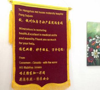 外籍病友希亚女士(化名)来杭州已经5年,在单位组织的体检时发现患有子宫粘膜下肌留,上周在杭州红房子妇产医院冯素娟主任的精心医治下已成功,特送来一面中英双语锦旗表示感谢。据希亚女士(化名)描述自己每年都要进行健康体检,这次在患病之后,经同事介绍来到杭州红房子妇产医院。
