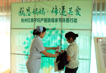 “一方面嘛,在母亲节这个特殊的日子里,在许愿墙上摁下爱的指纹和写下对母亲的深深祝福,既是给那些没有办法陪母亲过节的市民,提供了一个送祝福的平台,同时也是希望让更多人了解母亲节的意义。”杭州红房子妇产医院陈院长在谈及举办此次许愿行动的初衷时说道,另一方面也是营造家的气氛,把医院当成一个家庭,让患者充分享受温馨服务,让我们的医疗工作者互相协作,共同努力,为女性健康事业做出更多贡献。