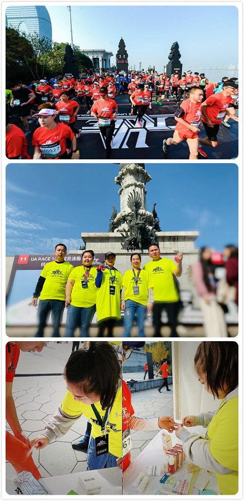 爱生活,更爱健康,有一股温暖的力量,从未离开过!杭州红房子妇产医院组织医护志愿者全程参与、严阵以待,准备了冰袋、云南白药、碘伏棉棒、绷带、固定夹板等医疗物资,负责起终点和折返点的医疗保障工作,全力为参加活动的跑者们护航。